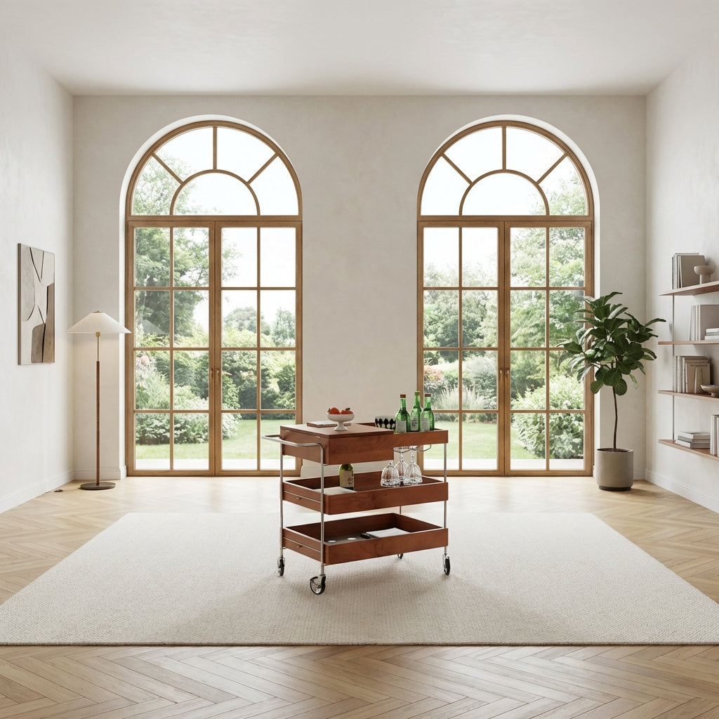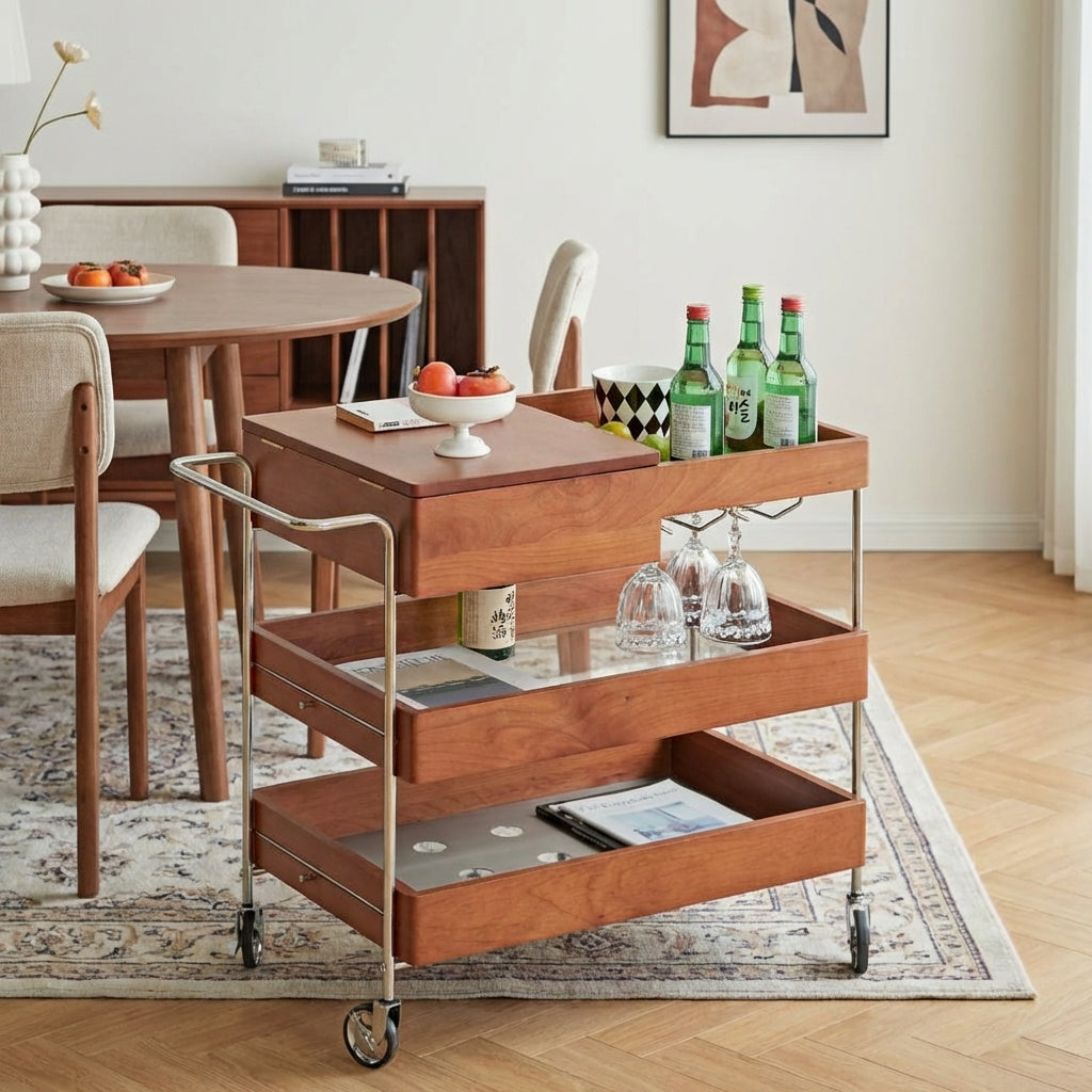 Get organized with this Abrams 3-Tier Bar Cart with Wheels! 3 large storage compartments are supported by tubular steel frames and swivel wheels to make the most of your space. This cart is designed for multipurpose use in the home, business, and office. It's perfect as a bar cart filled with glasses and bottles in a restaurant, in the bathroom to store toiletries, and more. Store groceries and books in the cart for quick and easy access when needed.