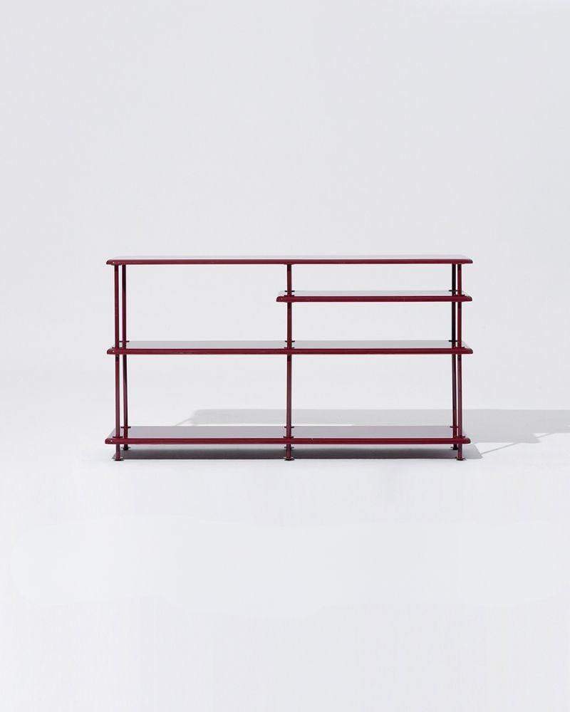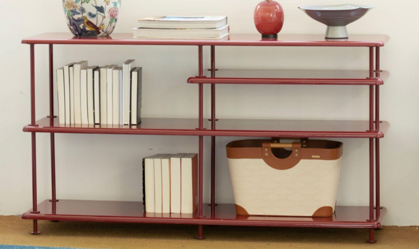 The Anylia Modern Side Cabinet features a minimalist Italian design with functional open shelves for display and storage. Its durable build and sleek Rouge Canyon Red finish add elegance and practicality to any modern living space.