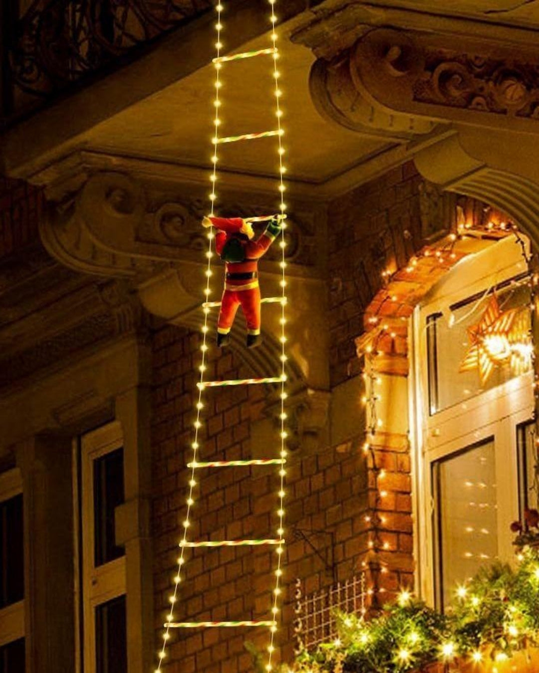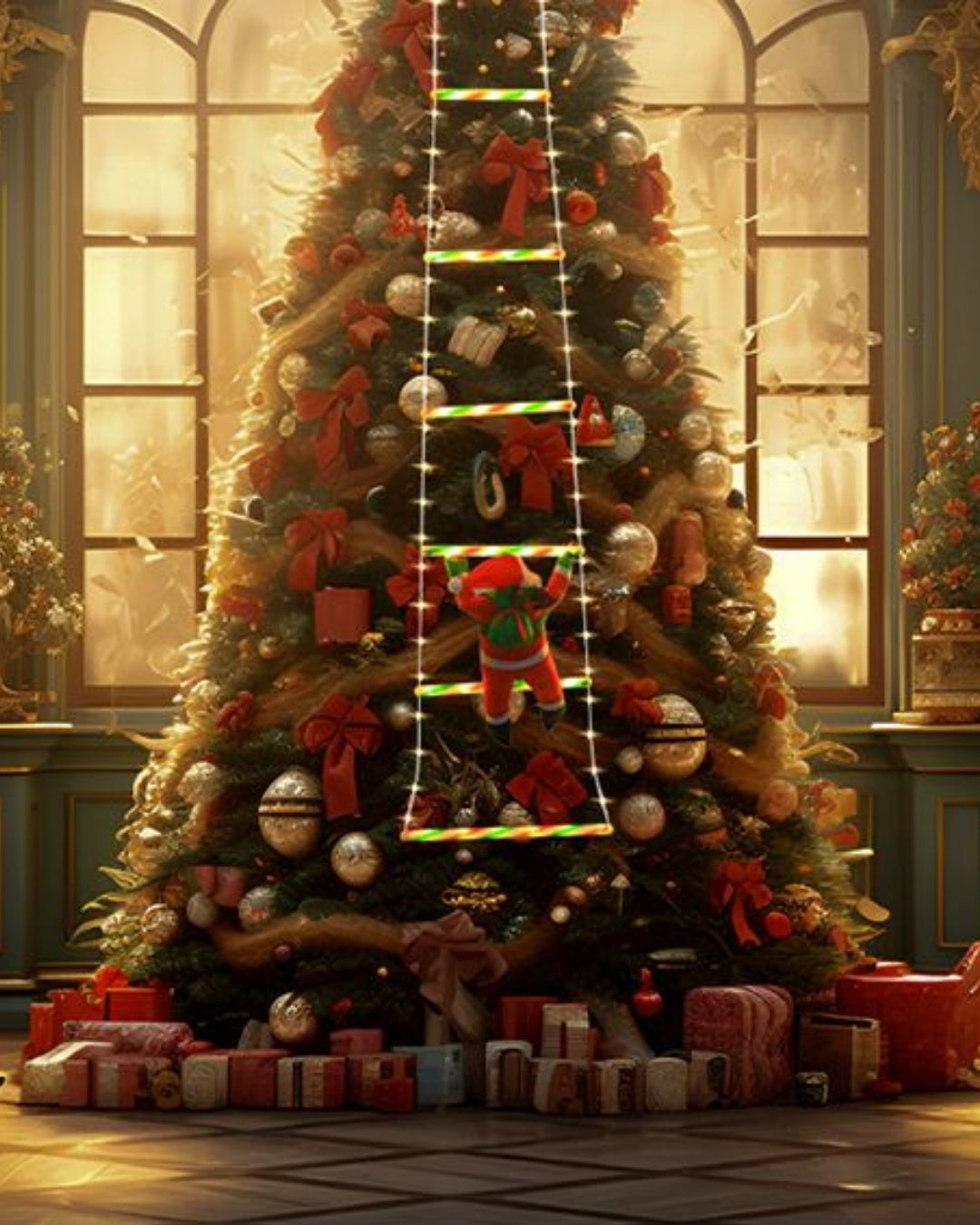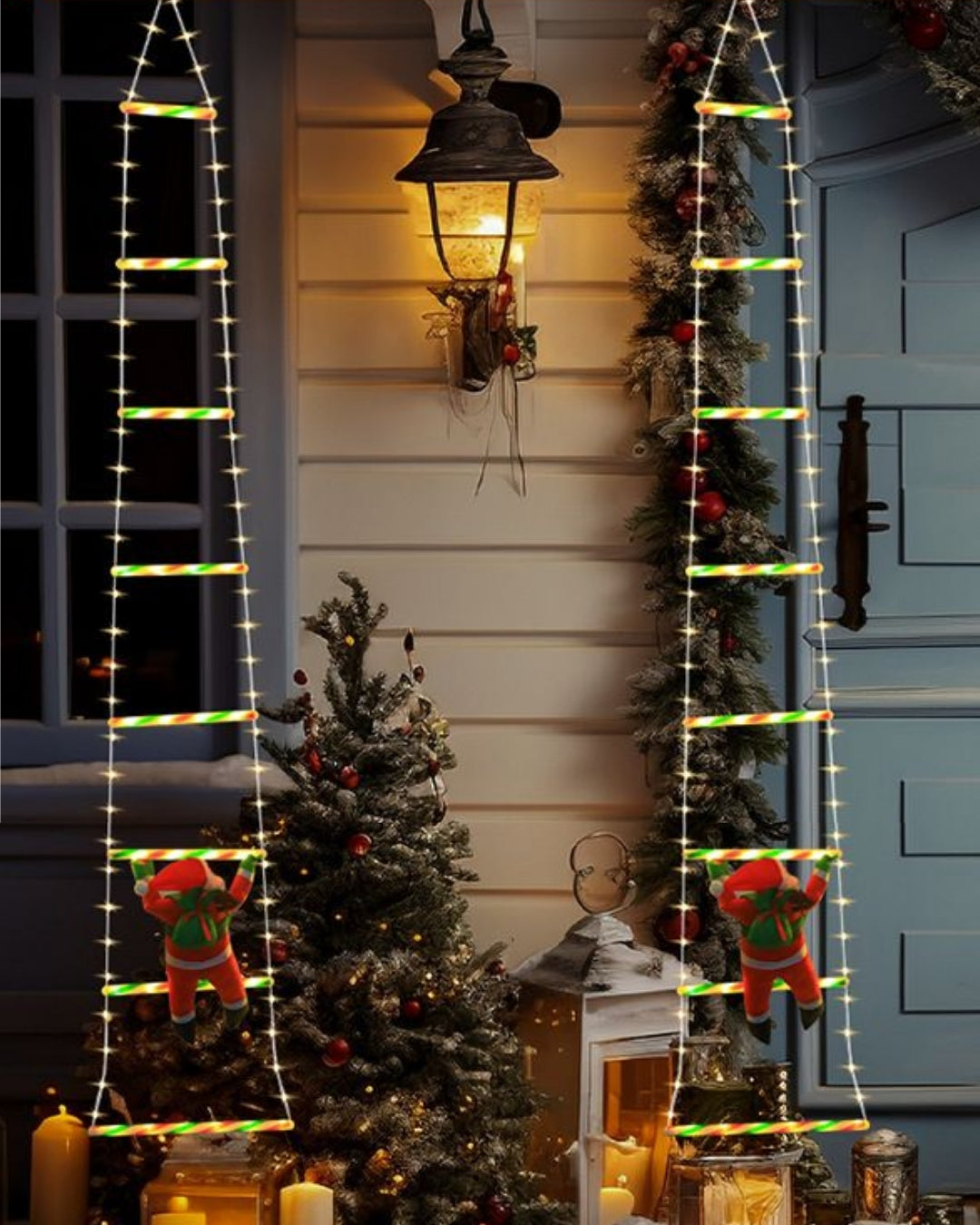 The Frolina Santa Climbing LED Tree Light delivers eye-catching holiday ambiance with a ladder design featuring animated Santa figures. Built with durable copper wire and splash-resistant LED beads, it powers via USB for flexible connectivity to devices or power banks. Eight lighting modes offer customizable effects through inline or remote control. Included hooks allow quick installation on trees, walls, or mantels for seasonal displays, retail environments, and event styling.