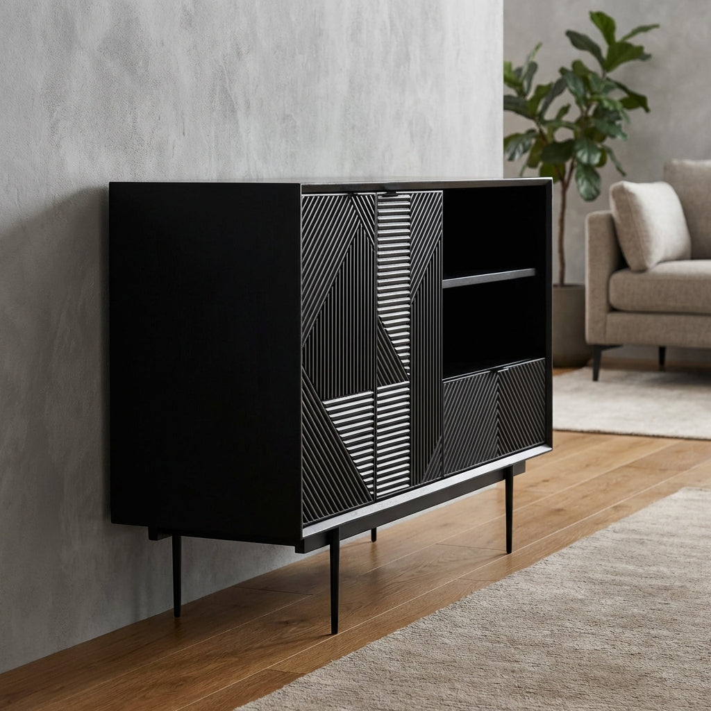 The Noelle Wood Sideboard is the perfect addition to any home. Its intricate carvings provide visual interest, while its spacious storage options offer plenty of room to organize your belongings. Enjoy its blend of beauty and practicality.
