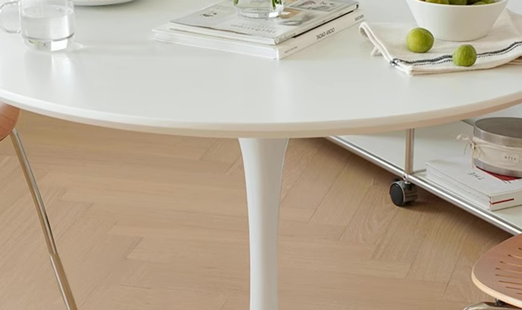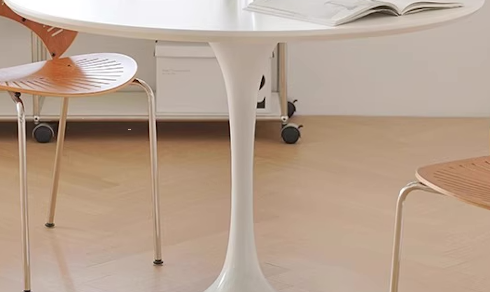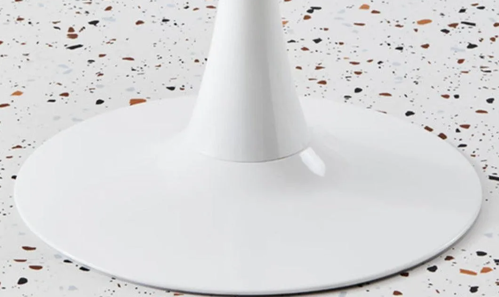The tulip-shaped legs offer a sleek, slender look while the reinforced joints ensure excellent weight capacity. This design not only saves space but also provides ample room for seating around the table.