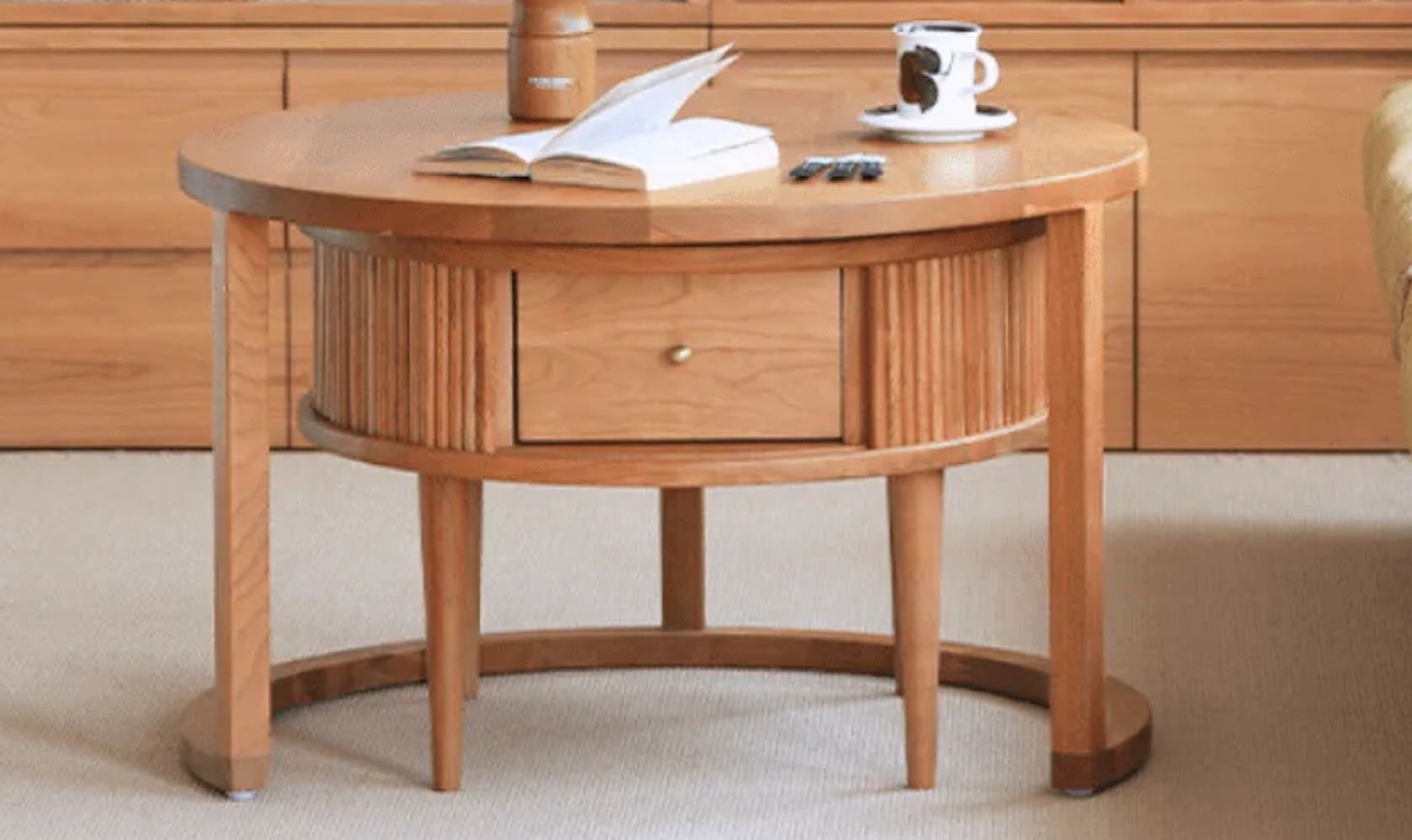 We really like these nesting tables. They are sold as coffee tables and in my opinion are sized for small space living. I decided then to use them between two occasional chairs. They are big enough to hold drinks and snacks for two people sitting on each side. I would recommend that you apply a light coat of beeswax and buff to add protection to the top surface.