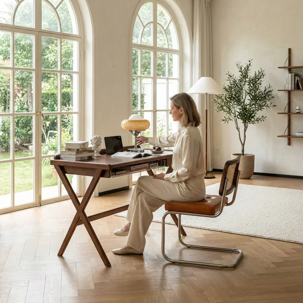 This desk is both functional and stylish. It fits perfectly in my home office, and the solid wood construction is a bonus. The thick tabletop adds a touch of luxury. Highly recommend!