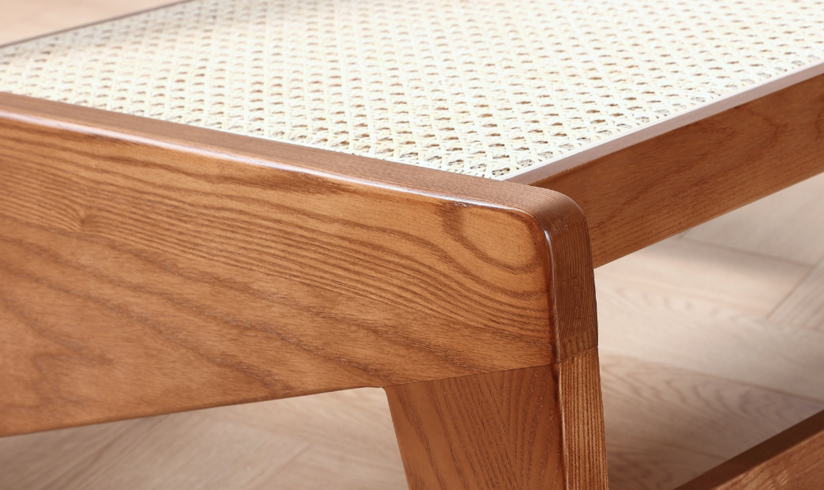 Vintage-inspired rattan chair design, handcrafted backrest and seat with traditional rattan weaving, lightweight, breathable, durable, and maintaining resilience sfter use.