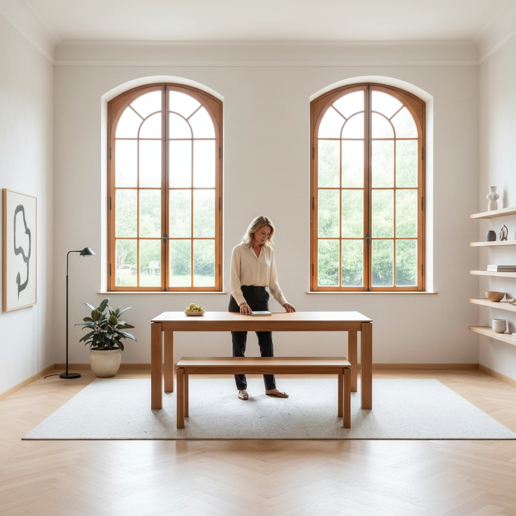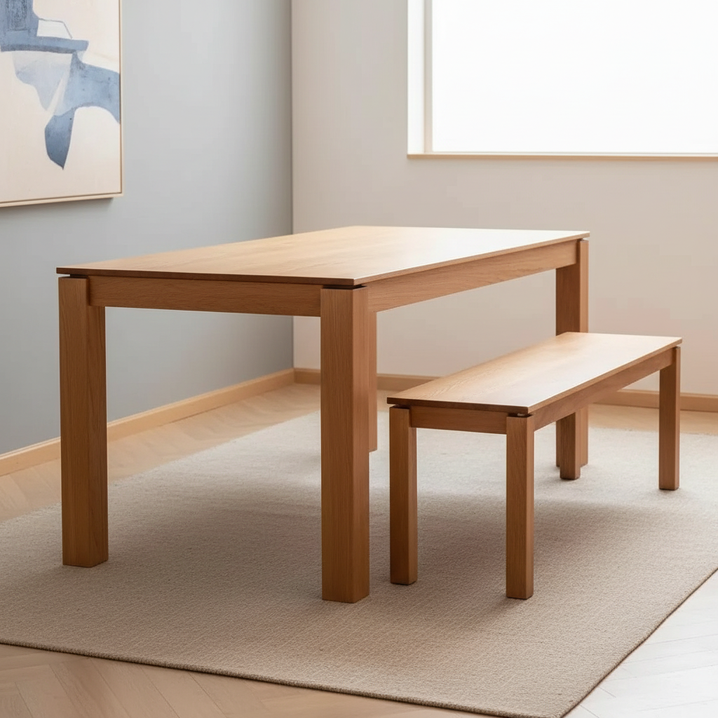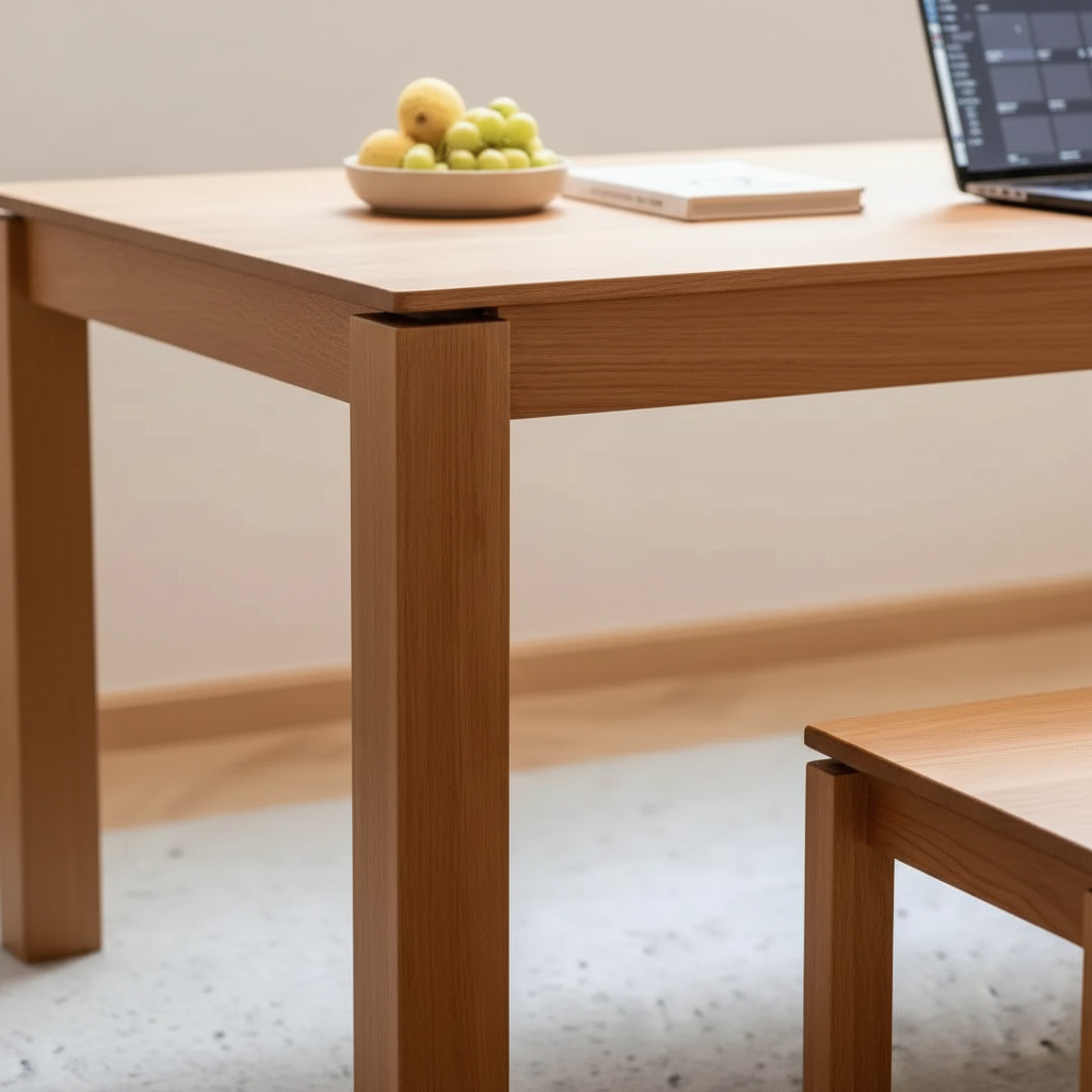 Crafted from premium FAS grade cherry wood, this dining table features a natural cherry wood finish that is both formaldehyde-free and non-polluting. The four feet are equipped with silent non-slip mats for added stability and safety, while the tabletop's edge has been carefully polished to prevent any potential bruising. Versatile in function, this table can serve as a dining table as well as a desk in your bedroom or study.