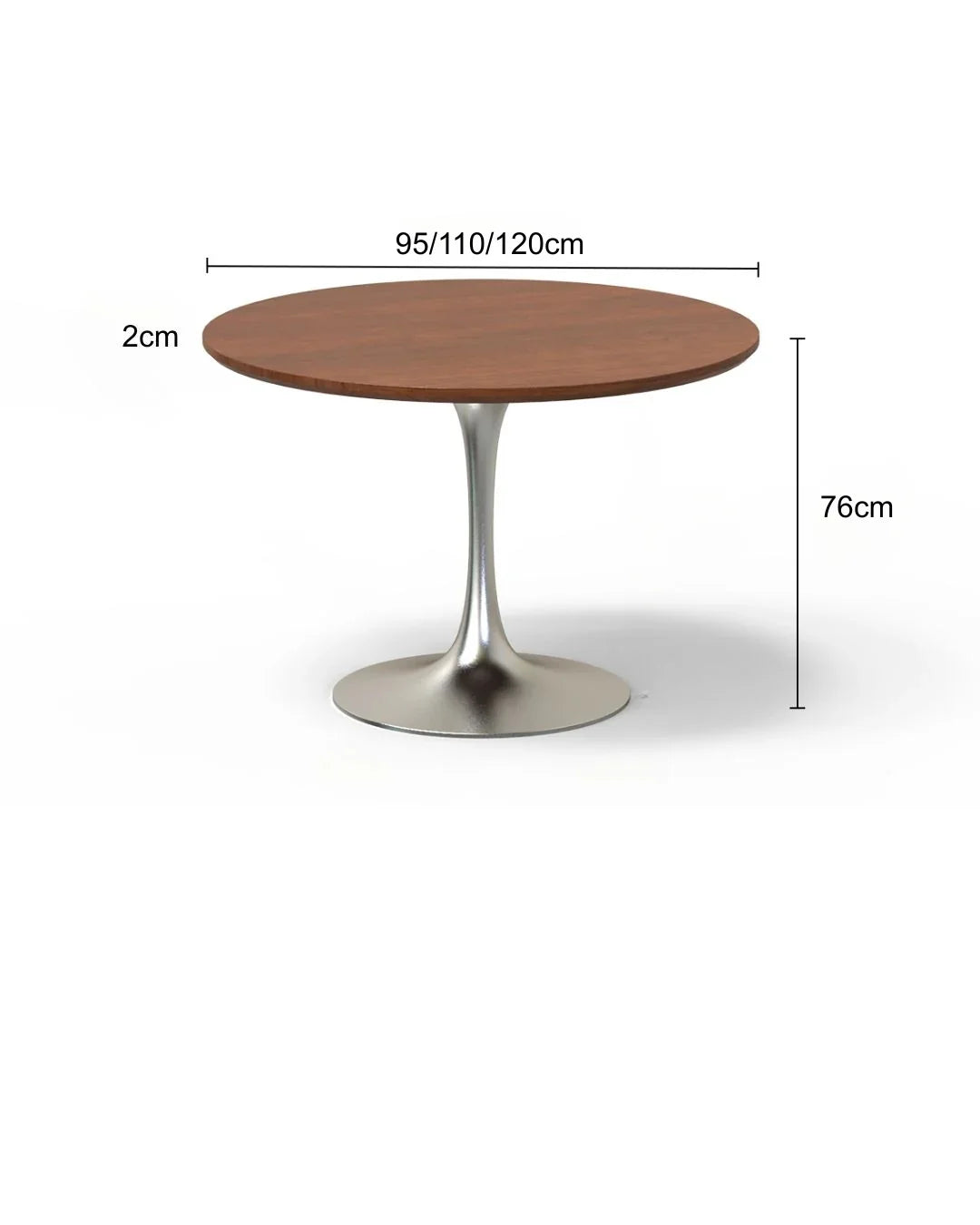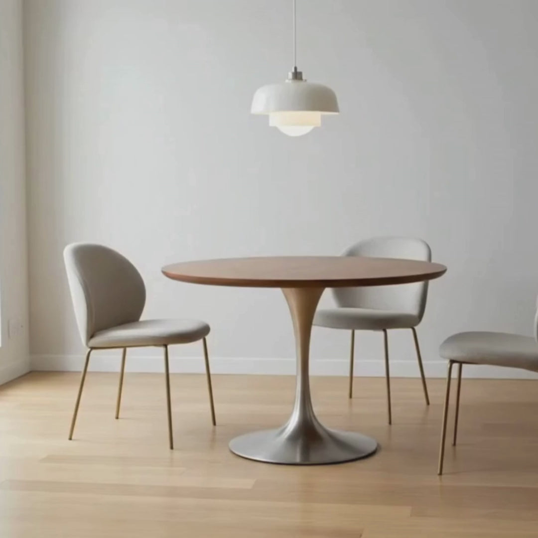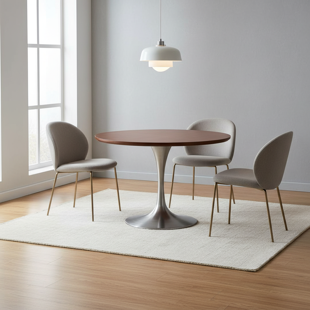 The Tulip Round Dining Table offers a durable, stable design with a comfortable round shape and smooth edges. Its solid wood build ensures long-lasting use, while providing ample legroom for an enjoyable dining experience. Ideal for family meals or casual gatherings, it blends retro style with practical functionality.