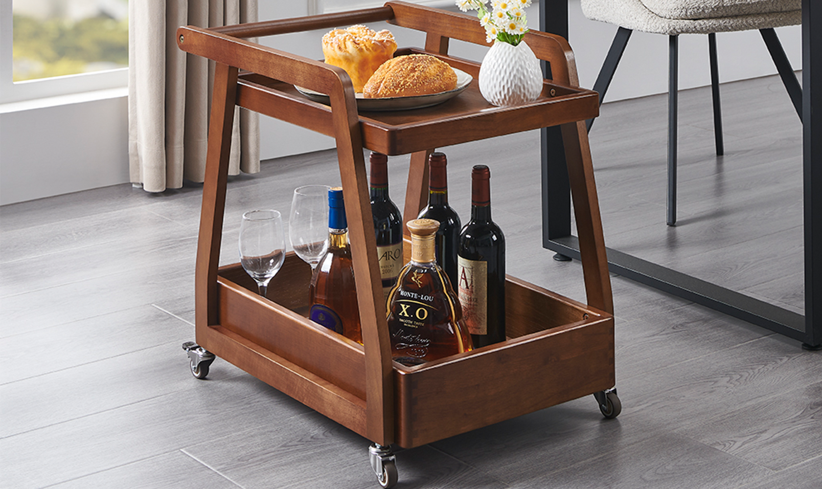 This bar cart is perfect for my small apartment. It’s compact yet sturdy, and the wheels make it easy to move around. The storage is very useful. Highly recommend!