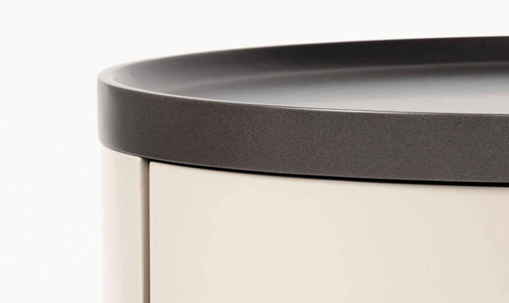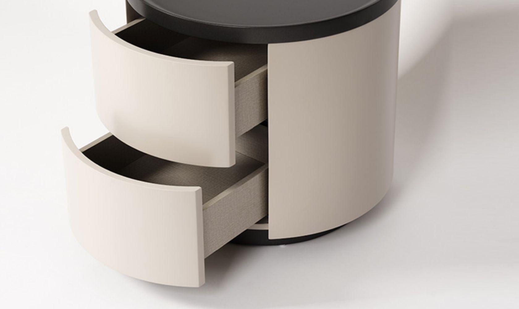 The Ellie Cream Style Round Nightstand combines minimalist Italian design with practical features. Made from solid wood with a smooth cream finish, its round shape and raised back keep items secure. It offers ample storage to keep your bedroom organized and requires no assembly for immediate use.