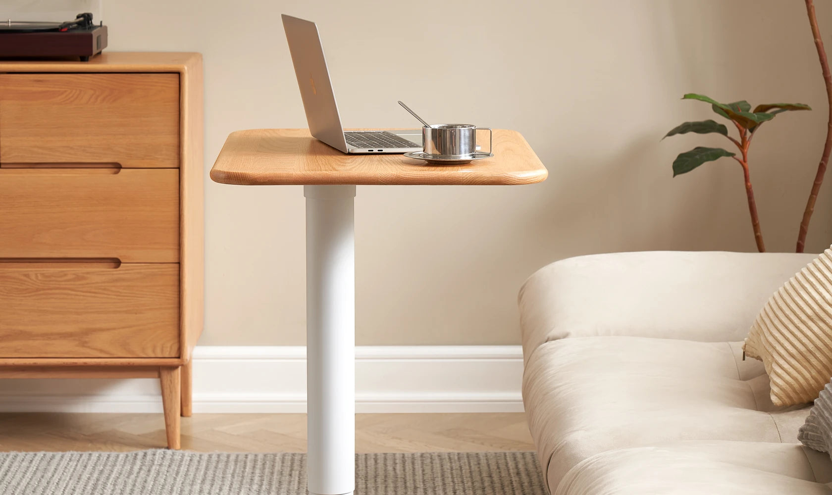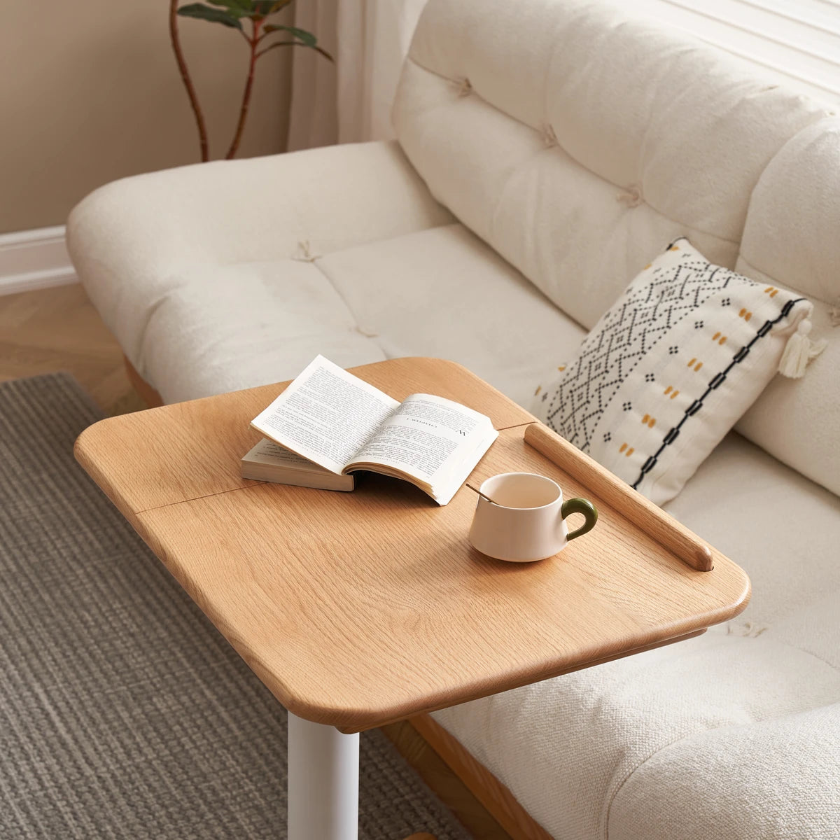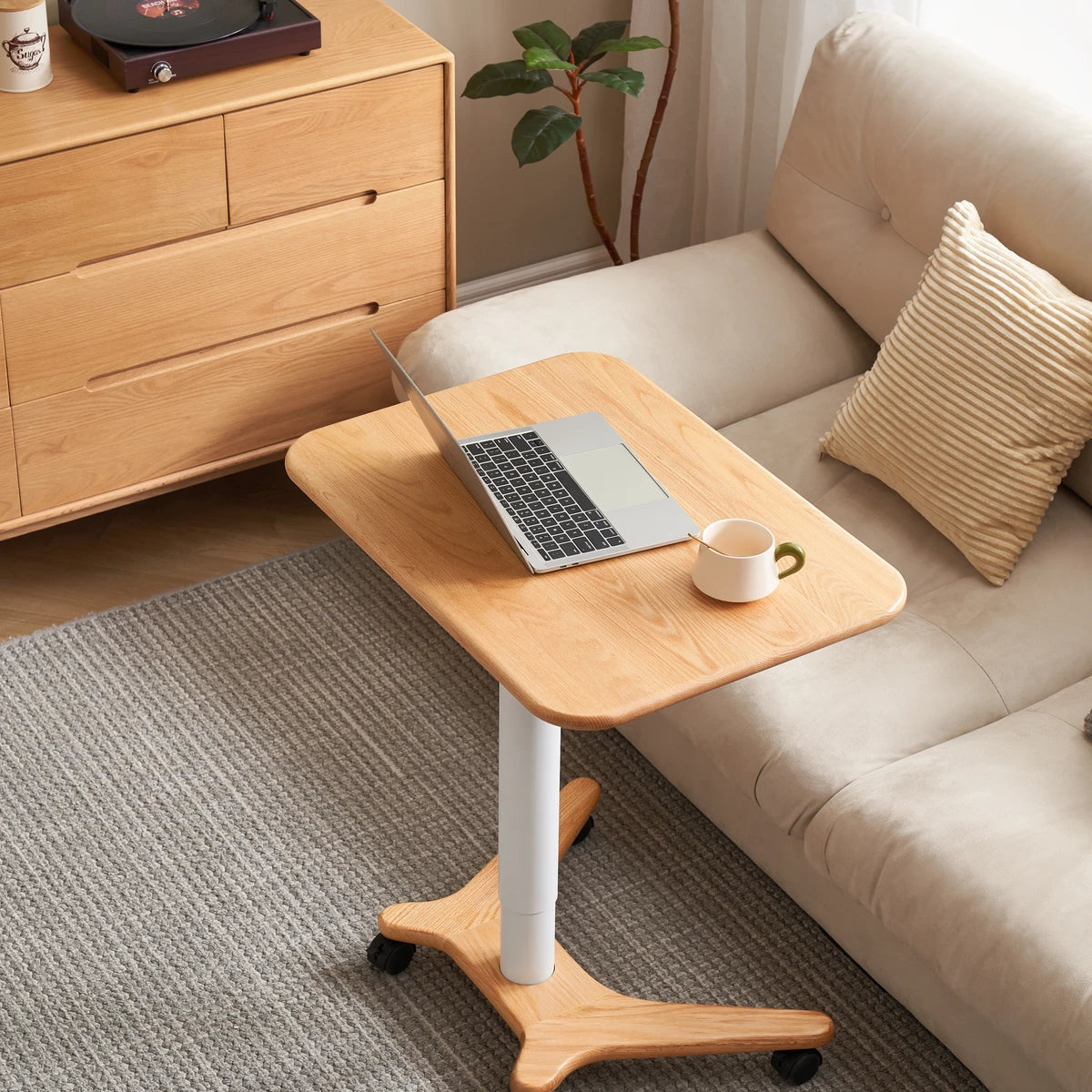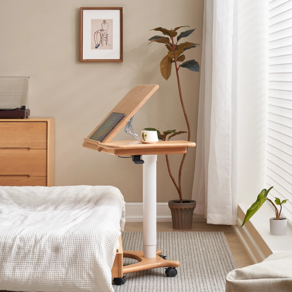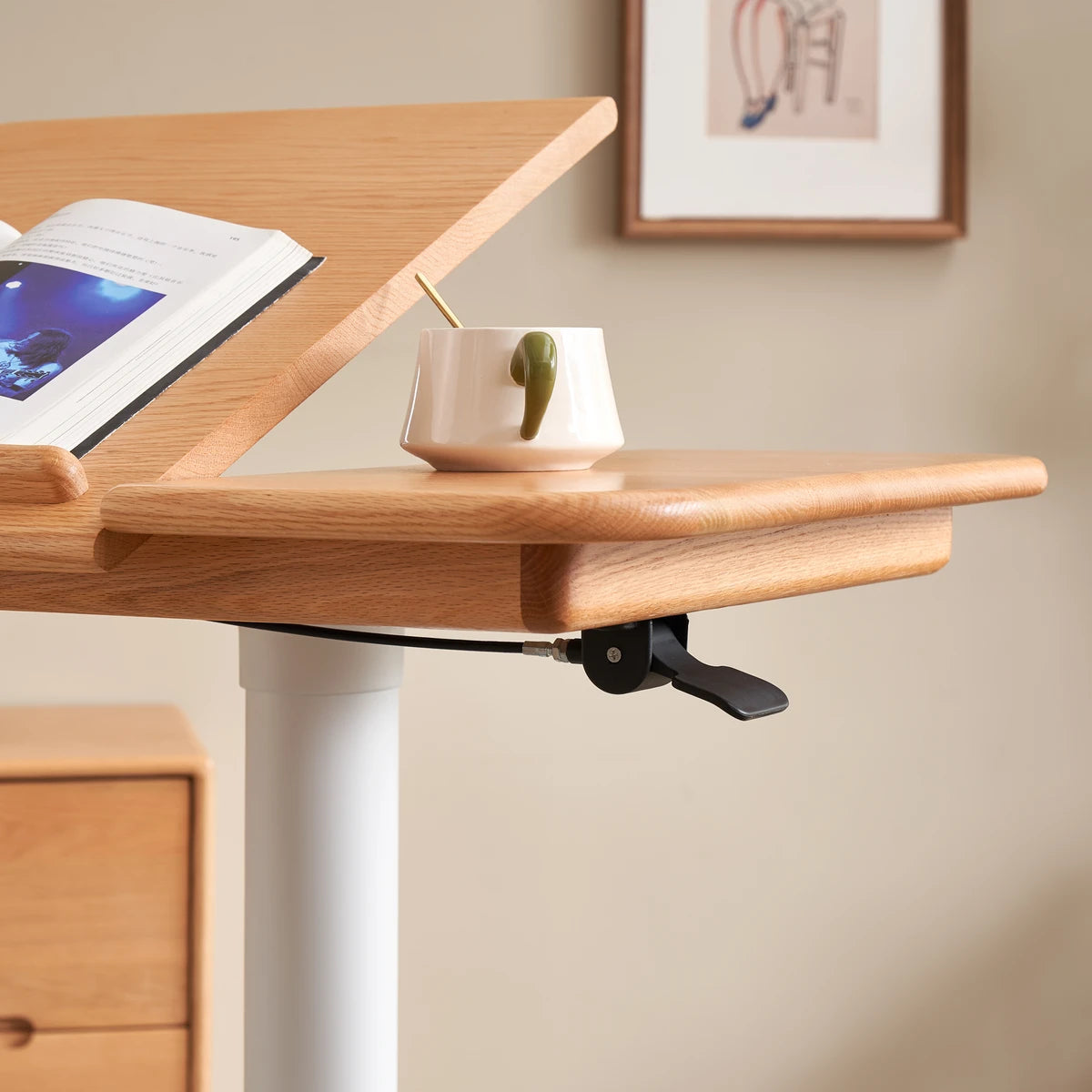 Elevate your workspace with the Sorrel Solid Oak Adjustable Mobile Desk. Crafted from premium North American FAS oak, it combines sturdy construction with flexible functionality. The height-adjustable design (713-1153mm) and tilting top (10 angles) let you work, read, or draw in comfort, while the smooth-rolling wheels make it easy to move between rooms. A removable solid wood stop bar keeps books or devices in place, and the thick 20mm tabletop ensures lasting durability. Perfect for home offices, living rooms, and study spaces.