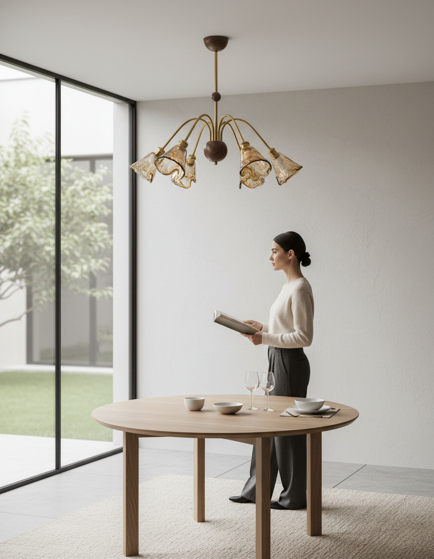 The Ava Artistic Glass Pendant Light combines hand-blown glass with an iron frame for a durable, elegant fixture. Available in multiple colors, this 85cm diameter pendant delivers energy-efficient LED illumination with adjustable color temperatures (3000K, 4500K, 6000K) to suit any mood. Perfect for living rooms, dining areas, or hallways, it brings contemporary style with vintage appeal to your home.