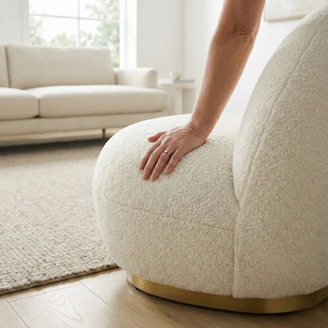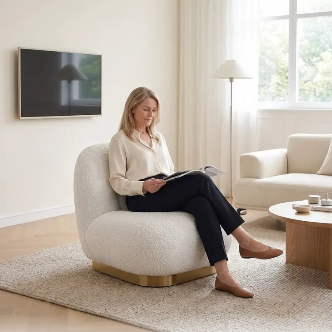 The Glenvar Lounge Chair is upholstered in high-quality sheep velvet fabric, known for its softness and comfort. It is highly wear-resistant, breathable, and easy to clean, making it a practical and cozy choice for your relaxation.