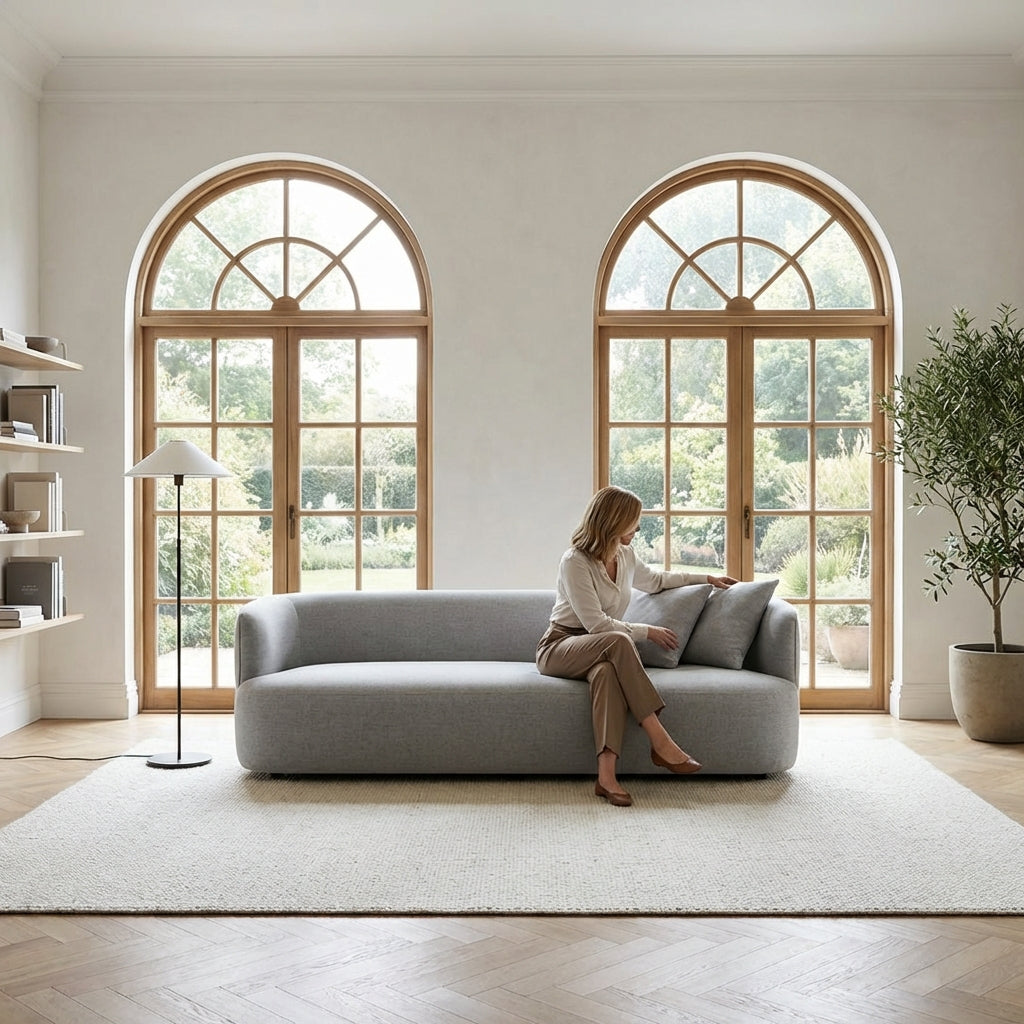 The Heb Designer Fabric Sofa is a minimalist and comfortable addition to any modern or Scandinavian-themed living space. Its sturdy frame and plush velvet upholstery offer durability, flexibility, and luxury, while the high-density foam cushions provide a cozy seating experience. The removable covers make maintenance easy, and the modular design caters to various room sizes and layouts. Experience the statement of style and sophistication with the Heb sofa.